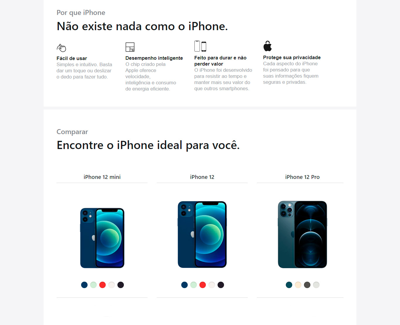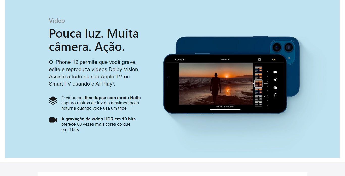| Cartão SIM: | Dual SIM (eSIM e nano SIM)12 O iPhone 12 e o iPhone 12 mini não são compatíveis com os cartões micro SIM existentes. | |