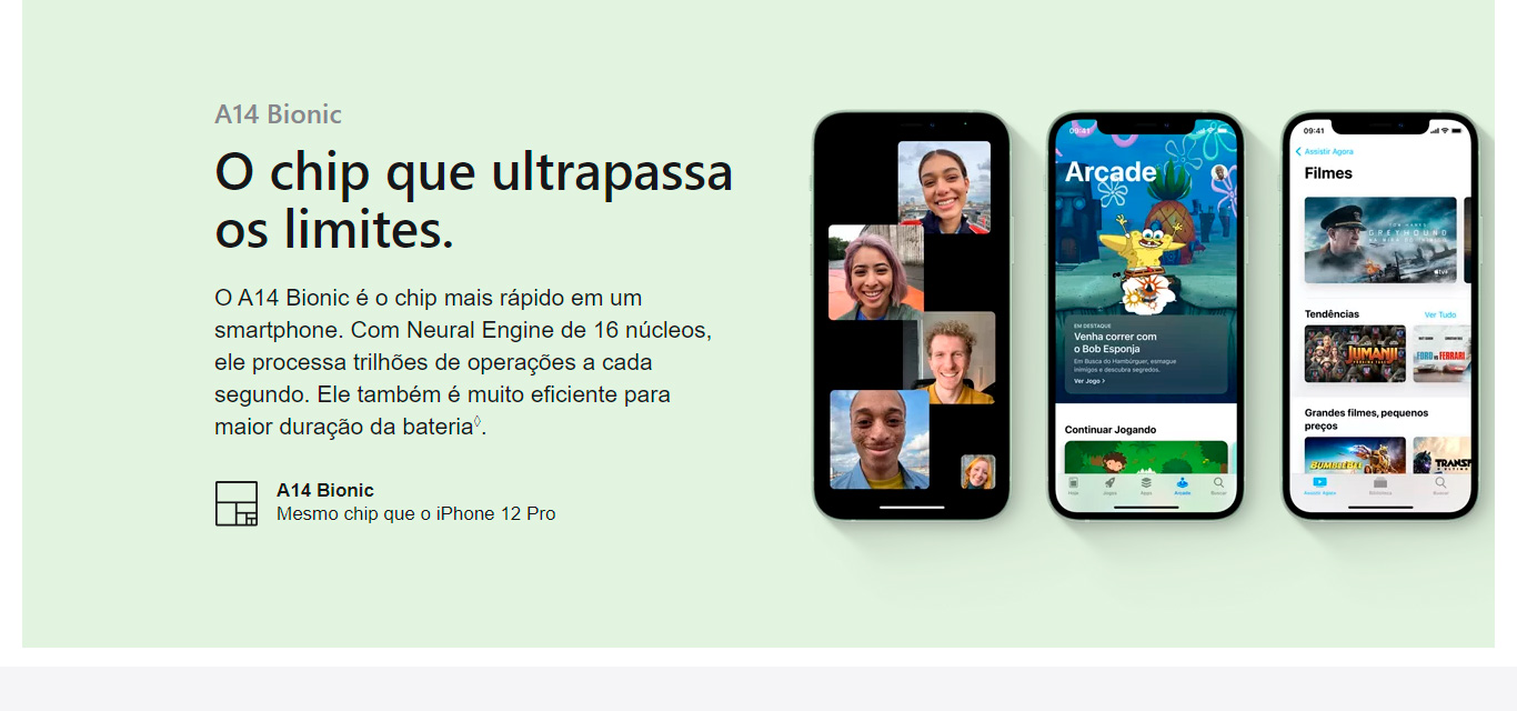 | Processador: | A14 Bionic Nova geração do Neural Engine | |