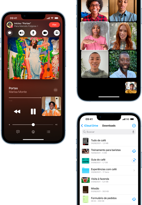 | Chamada de vídeo6 | FaceTime de vídeo via dados celulares ou Wi‑Fi FaceTime HD (1080p) de vídeo via 5G ou Wi-Fi Compartilhe a experiência de assistir a filmes ou TV, ouvir músicas e abrir apps nas chamadas FaceTime com o SharePlay** Compartilhamento de tela** Modo Retrato no FaceTime de vídeo Áudio espacial Modos do microfone: Isolamento de Voz e Espectro Amplo Zoom na câmera traseira | |
