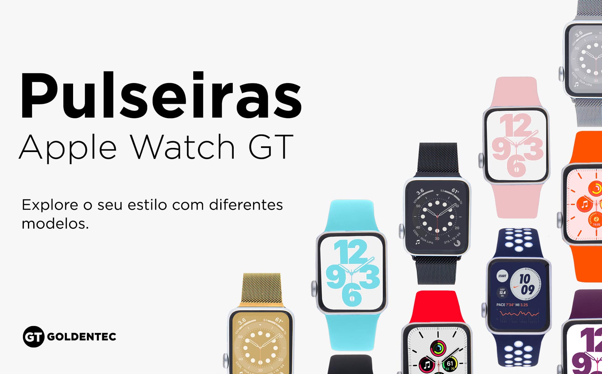 Feitas em aço inoxidável e fecho magnético, a pulseira Apple Watch GT traz ainda mais estilo para você.