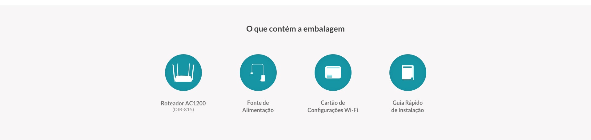 | Conteúdo da Embalagem | Roteador D-Link DIR-815 Cartão de Configuração Wi-Fi Fonte de Alimentação Guia de Instalação Rápida | |