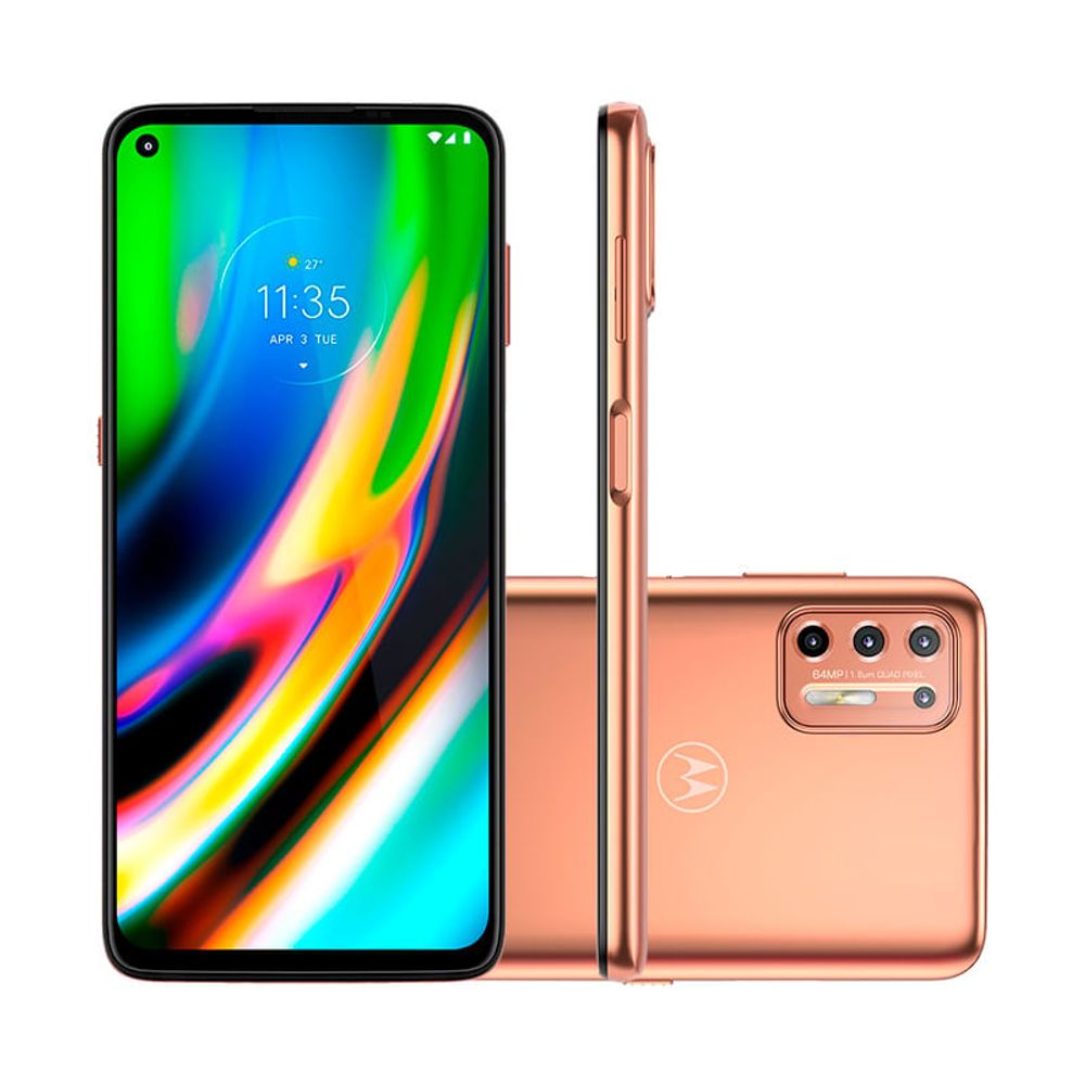 Motorola Moto G9 Plus é um smartphone android 10, ótimo para fotos, que pode satisfazer até o mais exigente dos usuários. Tem uma enorme tela Touch Screen de 6.8 polegadas com uma resolução de FHD+ (1080 x 2400). Possui 4G que permite a transferência de dados e excelente navegação na internet, além de conectividade Wi-fi e GPS. Tem também leitor multimídia, videoconferência e bluetooth. Enfatizamos a boa memória interna de 128 GB com a possibilidade de expansão de até 512GB. Além do mais, câmera quádrupla, principal de 64 megapixels que permite ao Motorola Moto G9 Play tirar fotos fantásticas e gravar vídeos em alta definição (Full HD).
