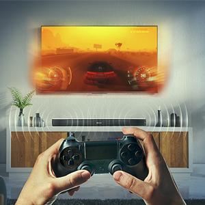 Os sons agudos e graves do Soundbar proporcionam percepção de espaço, clareza e profundidade com áudio de qualidade.