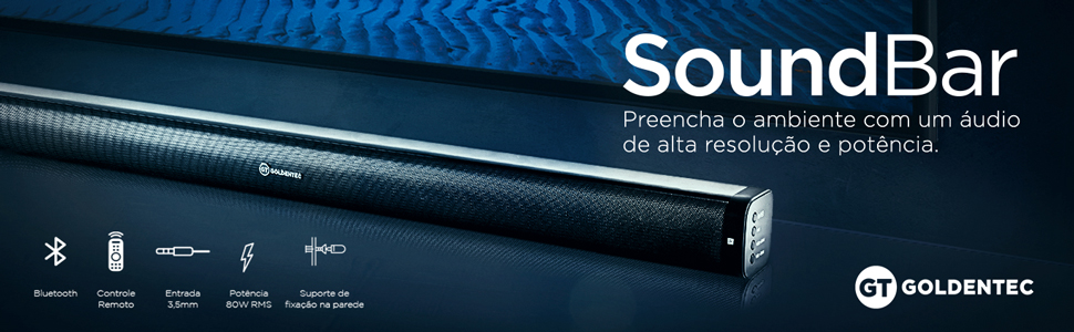 Em sincronia com a TV, o Soundbar 80W Goldentec proporciona uma realidade sonora completa e muito mais intensa. Faça valer a pena todas as suas experiências.